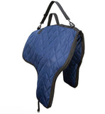 Lined with cushioning to protect your garments. Fold-over clip and shoulder strap for comfortable carrying. Outside pocket and name tag window. 35" long x 27" wide.